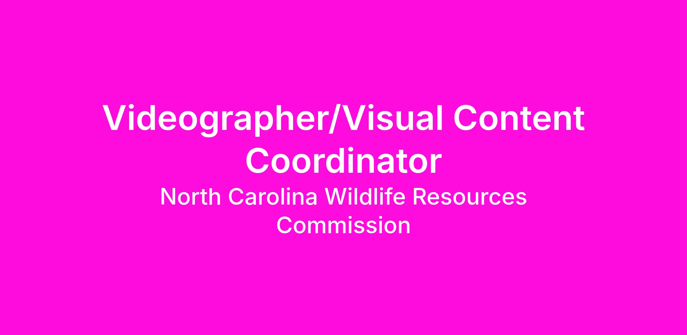 The North Carolina Wildlife Resources Commission is accepting applications for a Videographer/Visual Content Coordinator (Television/Media Services Coordinator) for our Office of Communications, Marketing and Digital Engagement (CMDE).Knowledge Skills and Abilities/Management Preferences