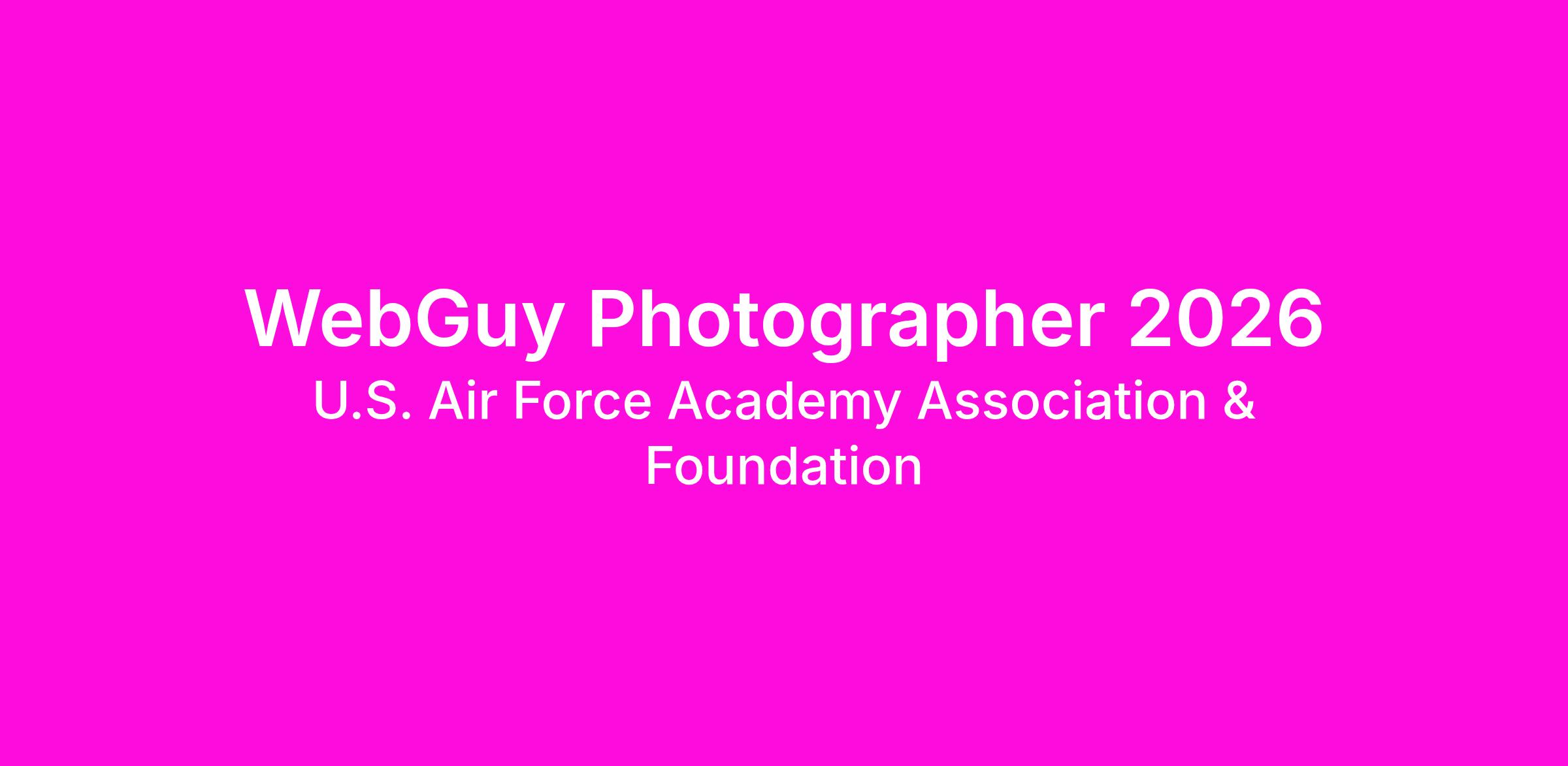 The Association & Foundation, in support of the U.S. Air Force Academy, seeks customer service-oriented individuals to join the alumni programs team as WebGuy Photographers ('Photographers'). The Photographers will capture photos for our the WebGuy Program that showcase the incoming class of cadets as they participate in various events hosted by the United States Air Force Academy ('Academy') during the summer.